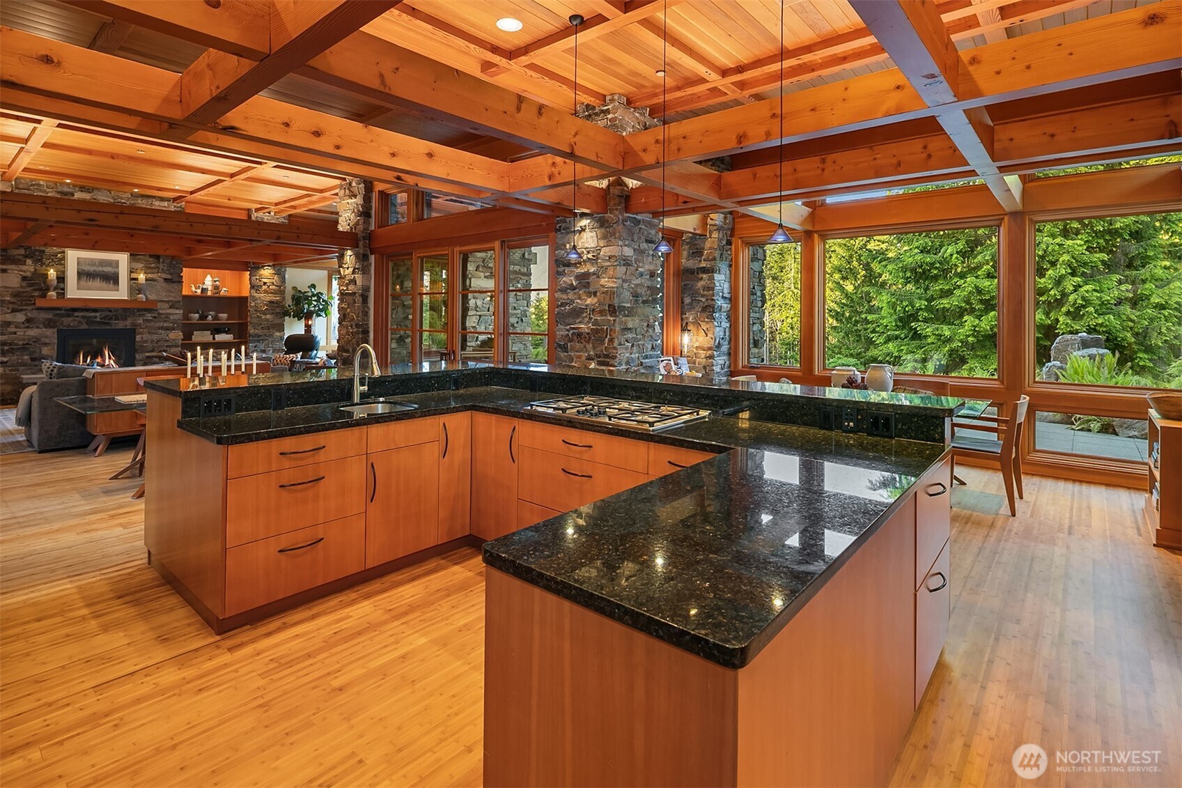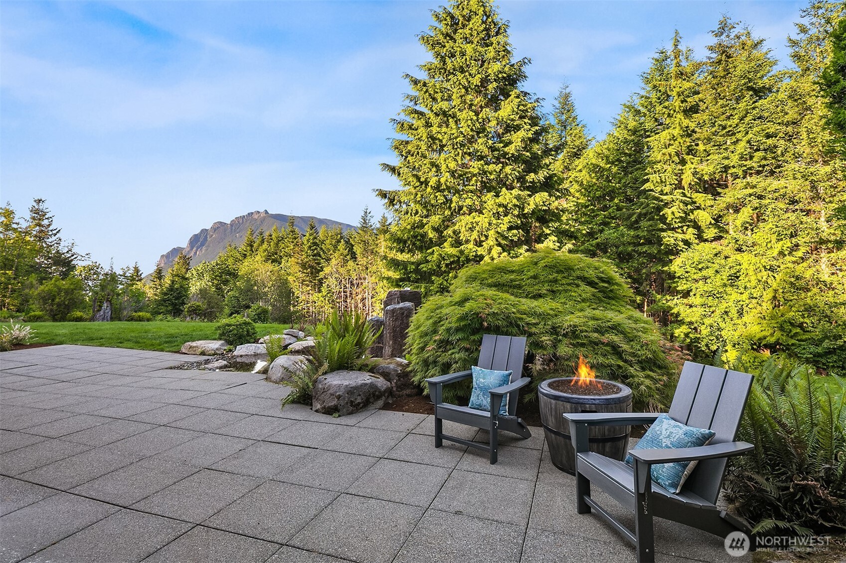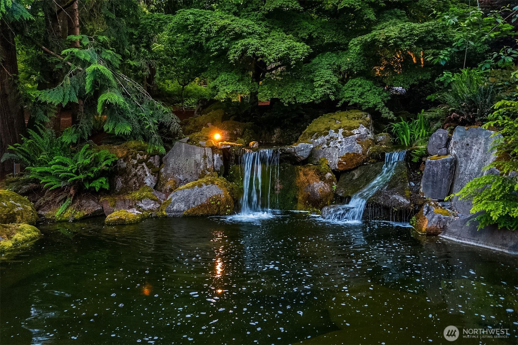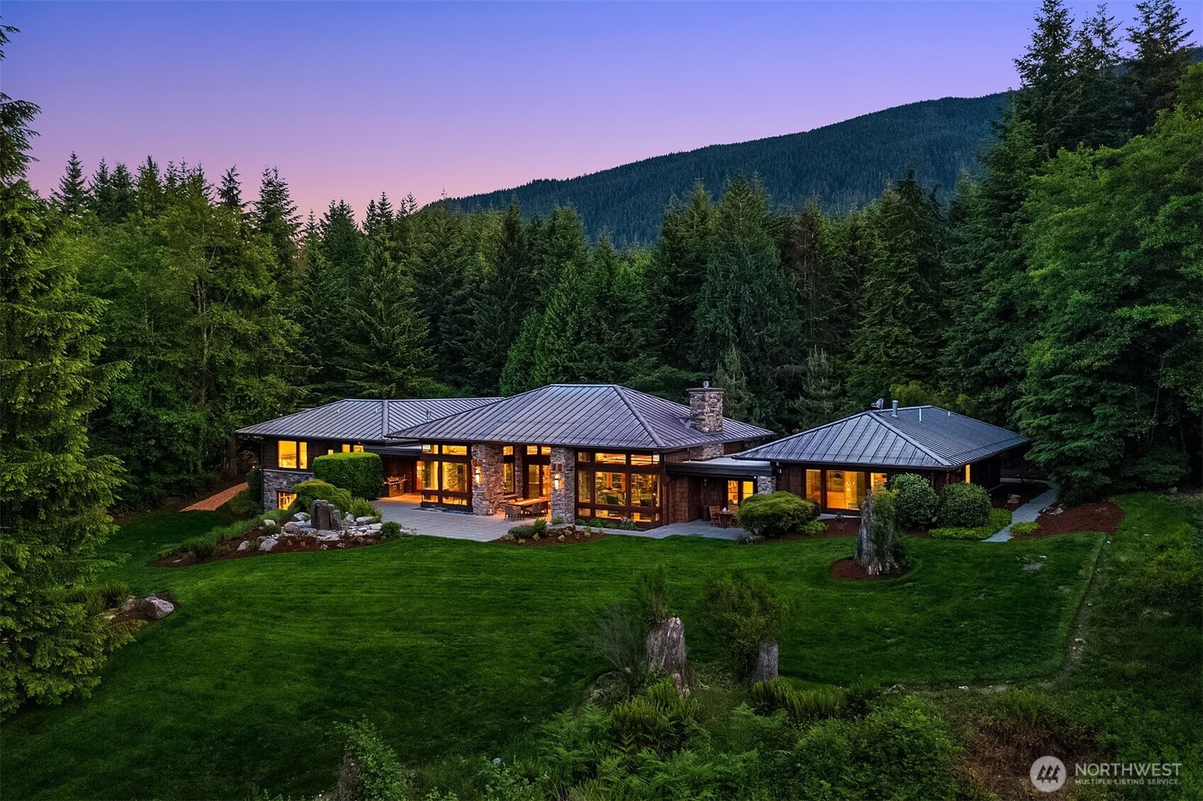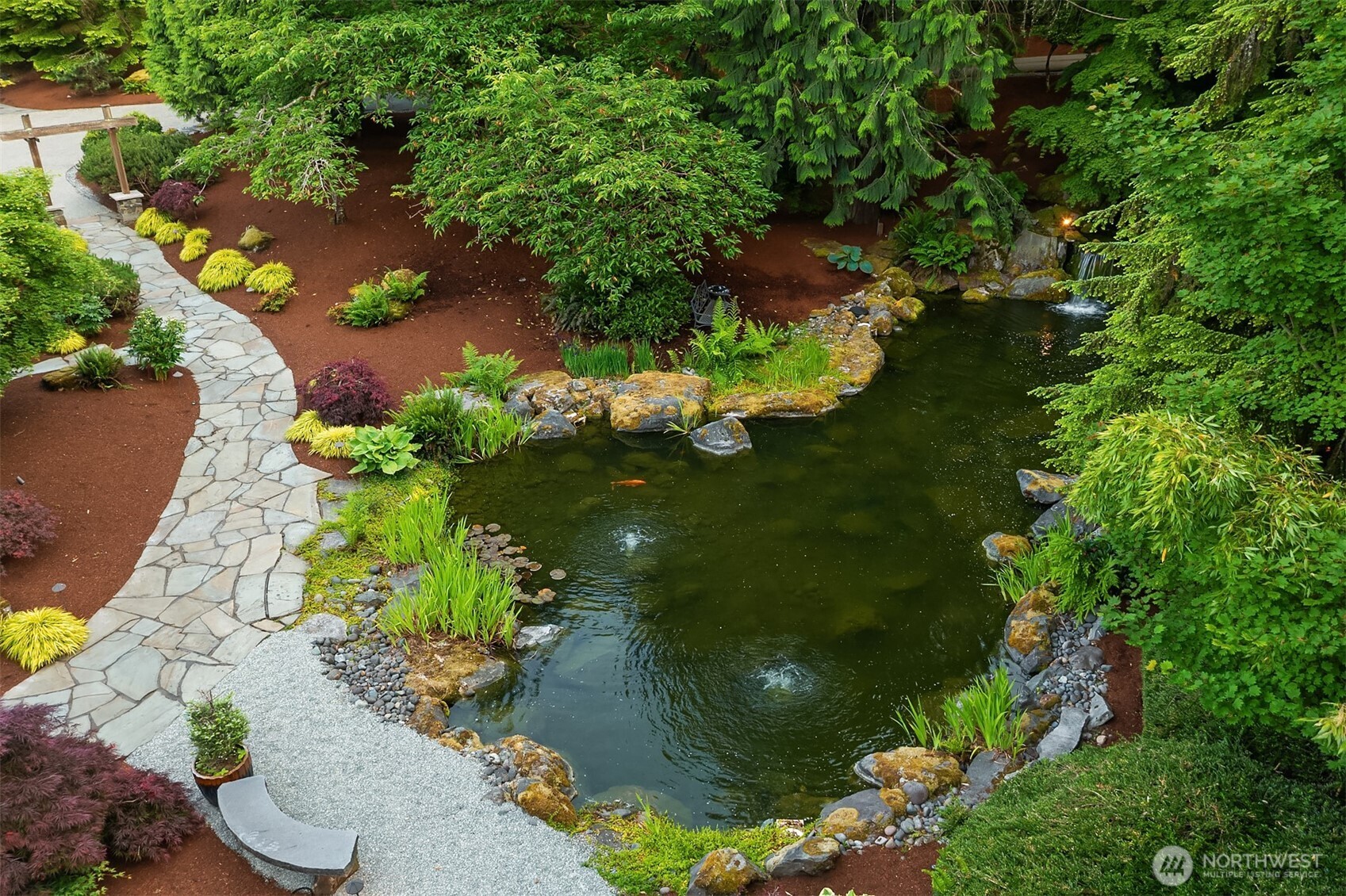 Award-winning 2002 MAME "Best Custom Home", inspired by Frank Lloyd Wright's iconic Falling Water, featuring PNW and Japanese influences. Stress melts with the sound of the waterfall. Enjoy feeding koi in a seasonal symphony of color landscaping. A temple awaits as you open the front doors with symmetrically balanced stone, wood, and glass. Awake with the sun and views of Mt Si, drift to sleep with the sounds of the water splashing. The primary spa awaits to nurture your tired body further. Take refuge in the cozy home theater with a 17' wide screen and soundproof walls. Whether feeding 4 or 40, the U-shaped kitchen layout is perfect for orchestrating meals, including guests for conversation or prep, but keeping them out of your domain.
