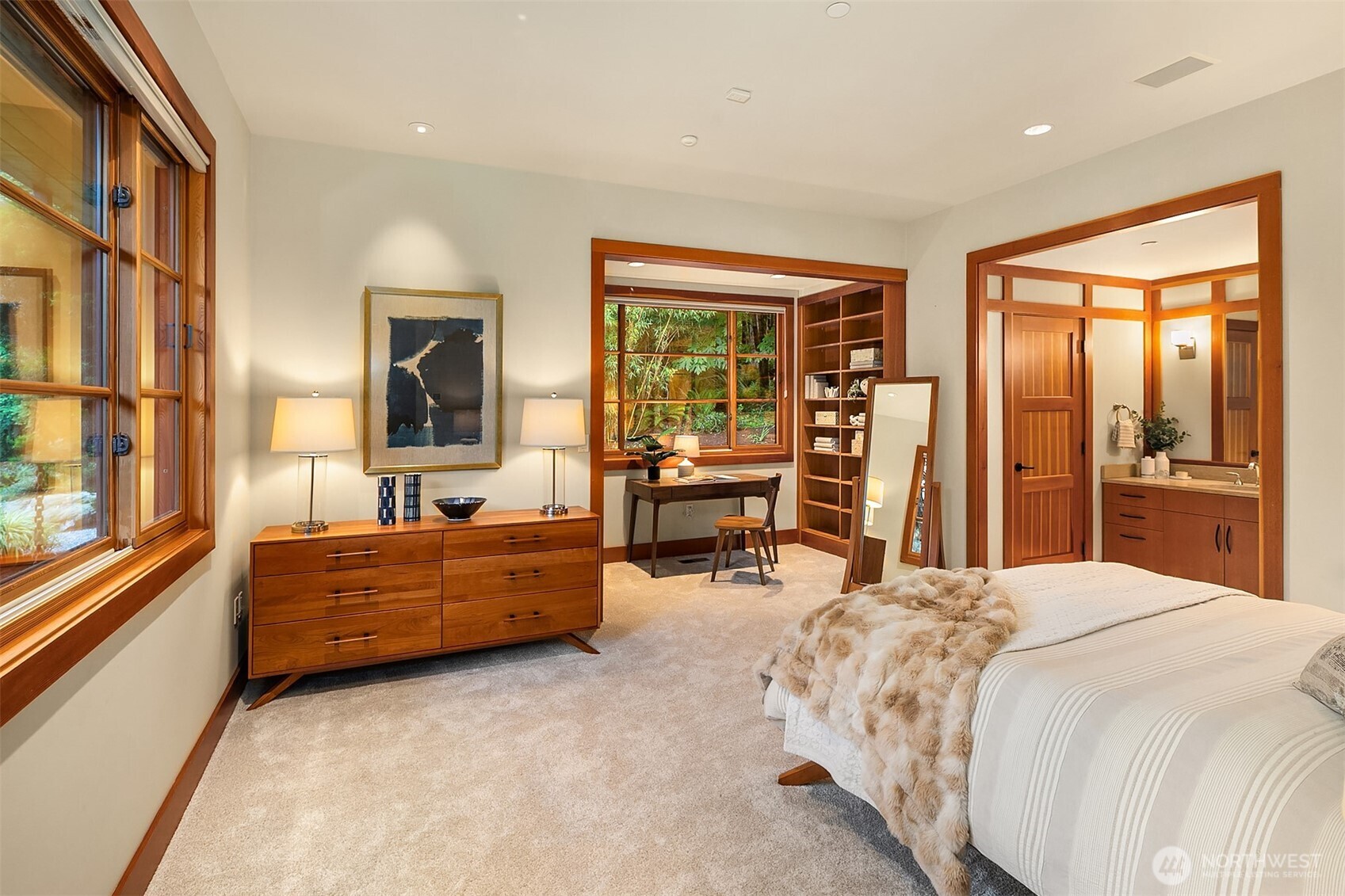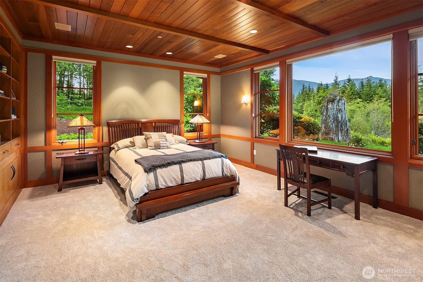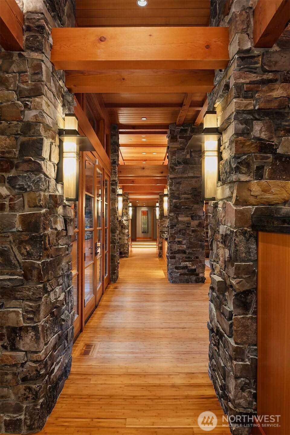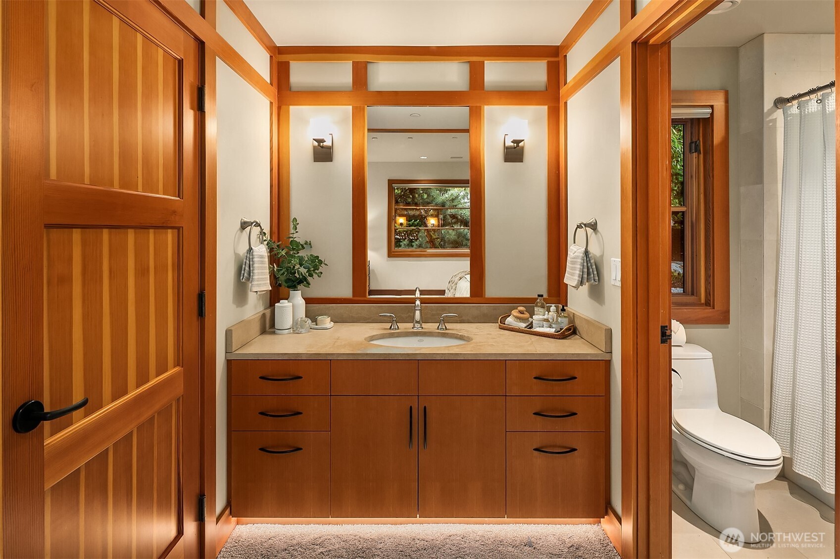 Award-winning 2002 MAME "Best Custom Home", inspired by Frank Lloyd Wright's iconic Falling Water, featuring PNW and Japanese influences. Stress melts with the sound of the waterfall. Enjoy feeding koi in a seasonal symphony of color landscaping. A temple awaits as you open the front doors with symmetrically balanced stone, wood, and glass. Awake with the sun and views of Mt Si, drift to sleep with the sounds of the water splashing. The primary spa awaits to nurture your tired body further. Take refuge in the cozy home theater with a 17' wide screen and soundproof walls. Whether feeding 4 or 40, the U-shaped kitchen layout is perfect for orchestrating meals, including guests for conversation or prep, but keeping them out of your domain.