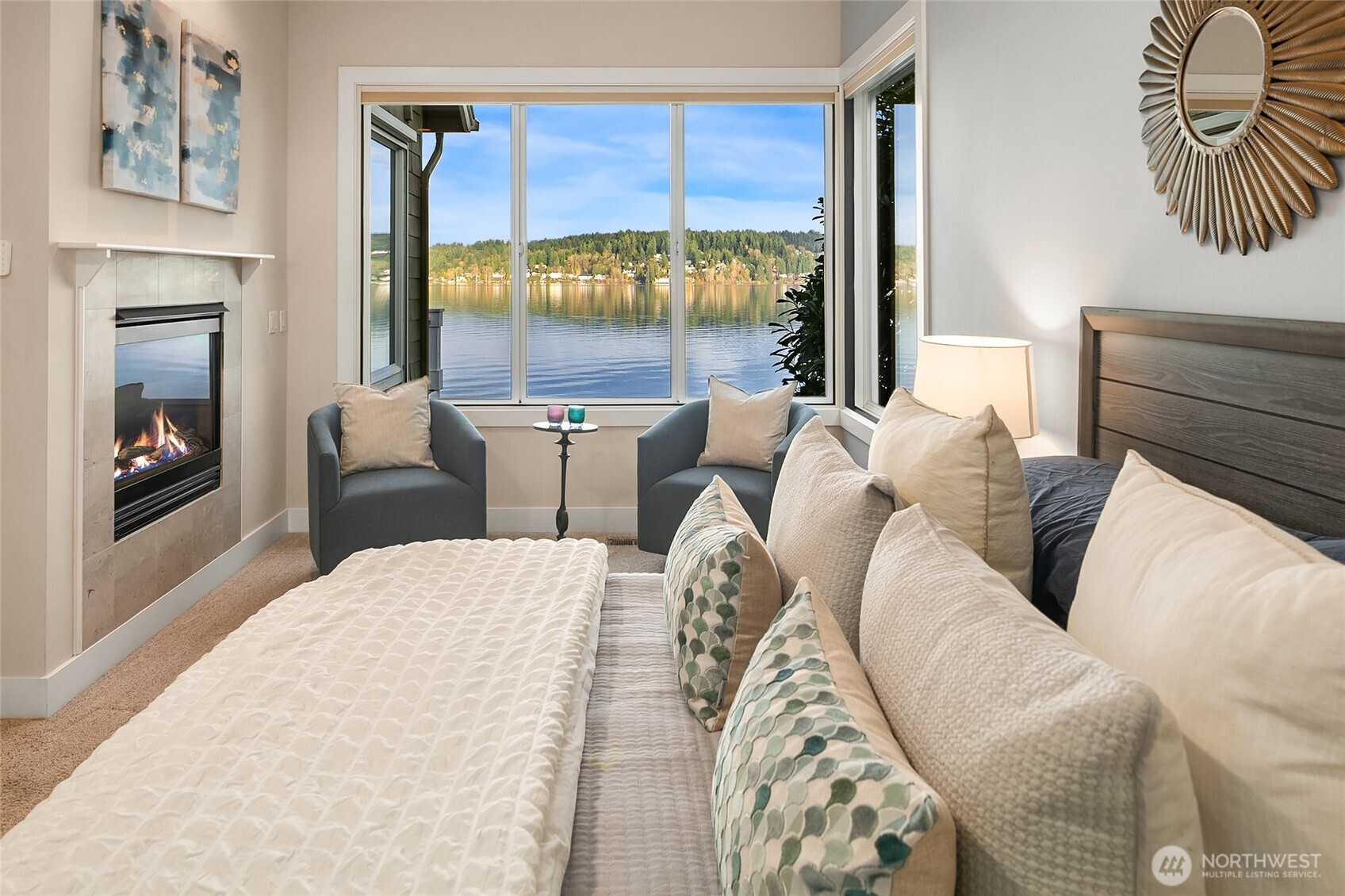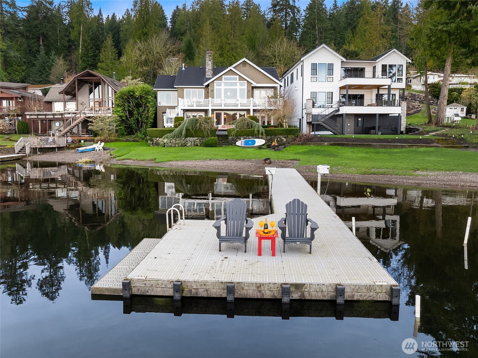 Pristine NW contemporary West Lake Sammamish waterfront residence on a sunny & quiet 1/2+ acre lot with 63' of sandy, no bank waterfront, newer dock with boat and wave runner lifts, croquet perfect lawn with surrounding mature vegetation. Panoramic lake & mountain views abound from every vantage point. Rare to find, enjoy a huge parking area, large enough to accommodate 20+ cars. Soaring ceilings and walls of glass welcome you into this open floor plan home. Gleaming hardwood floors on the main with a welcoming fireplace & built in cabinets. The home elevator features 2 floor access for ideal for multi-generational living. The kitchen is the heart of every home and this residence features not 1 but 2 kitchens. The main kitchen features a large walk- in pantry, crisp white cabinets, granite island & counters with designer appliances, including a new ice maker, a "must" for entertaining on the lake. French doors allow easy access to two full length lake view decks with plenty of space for al fresco entertaining. Ring in the morning at sunrise to delight in glimmering, glassy waters, perfect for a morning water ski or wake surf! Come in and warm up in the lower level cedar wrapped sauna or finish your morning work out in the huge lower level work out gym with mirrored walls. Super deep 3 car garage and 2 laundry areas. Electronic shades. too!. Great schools & easy access to I-90, 520 & the entire Eastside. Come home to the lake where every day feels like a vacation!