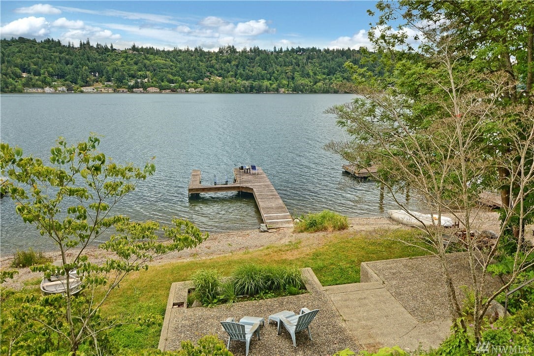 The BEST value on the lake & under $2M awaits! World famous mountaineer, Jim Whittaker’s former home on Lake Sammamish. Fittingly, epic Mountain Rainier, Cascade Mountain & lake views abound. This mid-century modern residence is nestled in a lush & native oasis. Massive lakefront deck for eagle watching & inspiring sunrises. Reminiscent of a tree house with alluring, fun spaces awaiting your personal touches. Great beach, 50’ of waterfront, dock & lift. Great access to Microsoft, Google & 520.